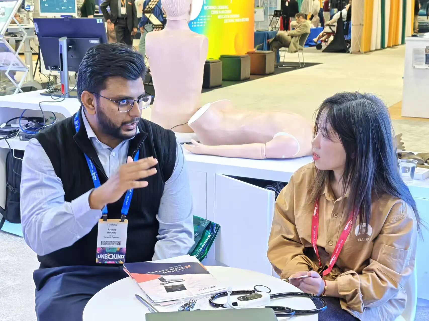 At Tellyes booth, our long-term partner from Russia made a special visit to experience MARS. They engaged with scenario "Severe traumatic hemorrhage": the simulator groaned, even demonstrated loss of consciousness, highly restored traumatic physiological changes, and accurately reflected corresponding shifts in vital parameters. After performing a series of trauma management techniques, they emphasized that Russia currently has a strong need for such advanced simulators to enhance local medical teams' capability in managing complex trauma cases.